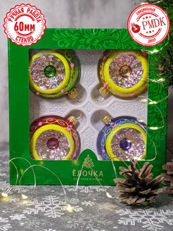 Набор елочных игрушек Яшма С1881, стекло, 4 шара, 60мм