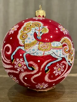 Елочный шар "Лошадь в яблоках" 9.5 см (№6 "Зодиак") Клин