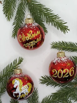 Набор из трех новогодних шаров символ года Лошадка Д 6 см