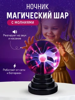 Ночник детский магический плазменный шар Тесла с молниями