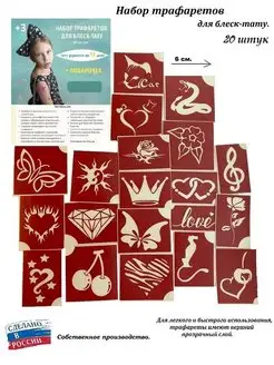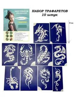 Набор трафаретов для тату хной,блеск 9 см. 10 штук