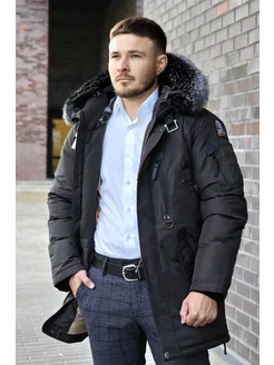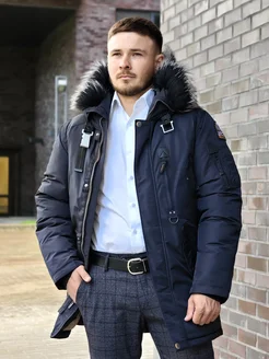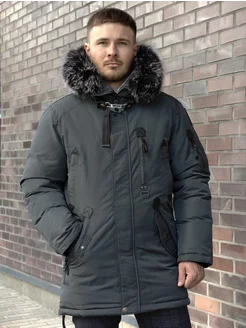 пуховик мужской зимний c капюшоном с натуральным мехом