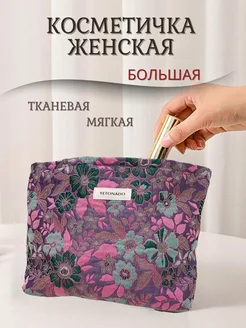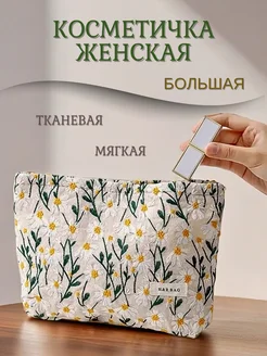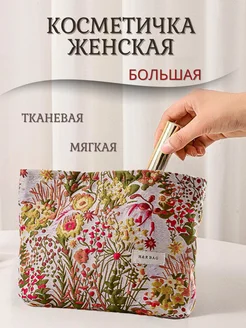 Косметичка большая тканевая мягкая на молнии для косметики