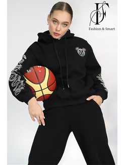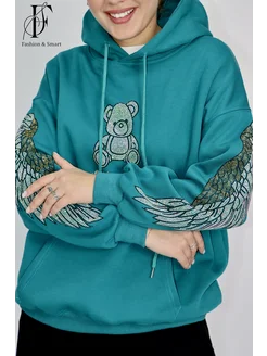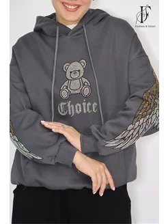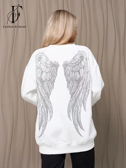 Футболка хлопковая базовая оверсайз со стразами дракон
