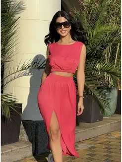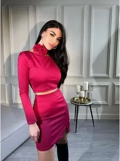 Костюм женский с юбкой мини и топом вечерний стильный модный