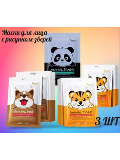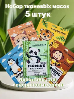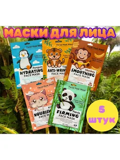 Набор масок для лица с мордашками животных 5штук