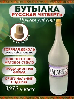 Бутылка стеклянная 3,075 литра "Четверть" МАГАРЫЧЪ и пробкой