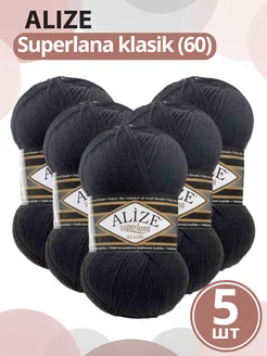 Пряжа Суперлана Класик Superlana Klasik - 5шт, N60 черный