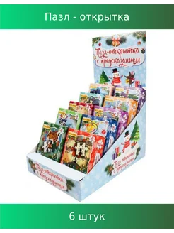 Пазл 24 Новогодний. Пазл - открытка с предсказаниями, 6 шт
