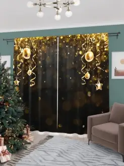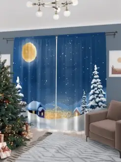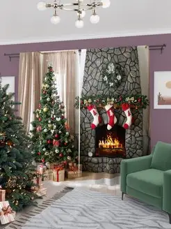 Фотошторы Новый год в гостиную и спальню 2 шт 145х260 см