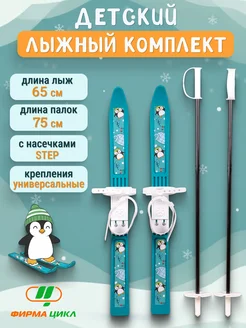 Лыжи для детей Пингвины 65 75 см с палками в сетке