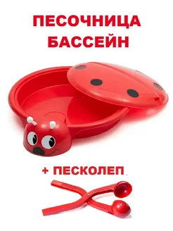 Песочница Божья коровка с крышкой и песколеп снежколеп Пласт