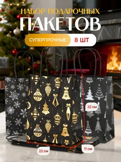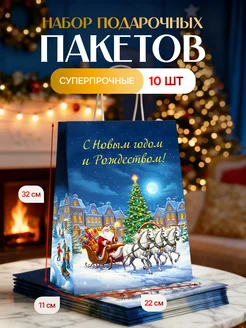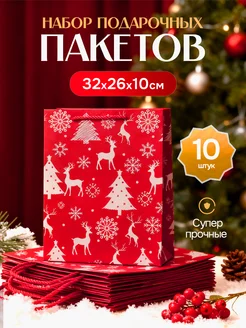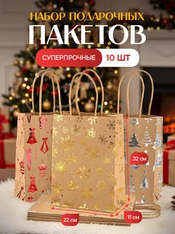 Подарочные пакеты новогодние бумажные, набор 10 штук