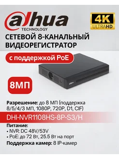 Сетевой ip видеорегостарор PoE 8 каналов NVR1108HS-8P-S3 H