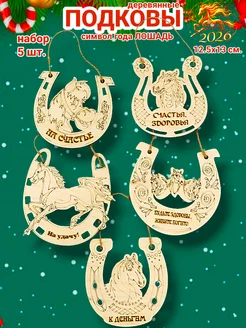Подковы на Новый год 2026 на елку деревянные с пожеланиями