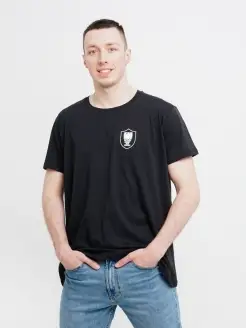 Футболка спортивная мужская черного цвета с принтами на спин…