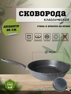 Сковорода антипригарная 28 см, без крышки с ручкой