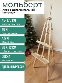 Мольберт для рисования напольный 175 см с полкой (разборный)