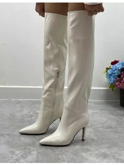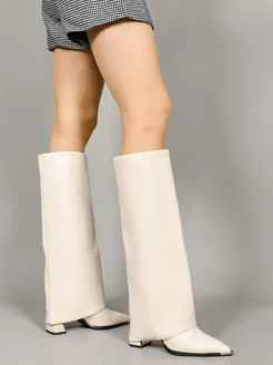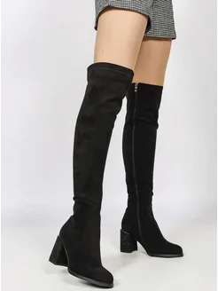 Сапоги трубы на каблуке демисезонные с широким голенищем
