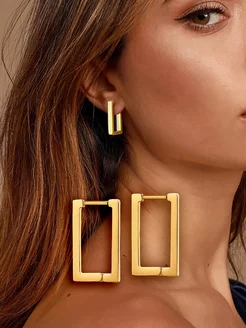 Большие серьги квадраты из медицинской стали