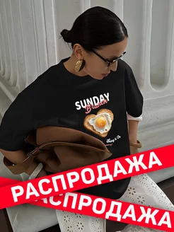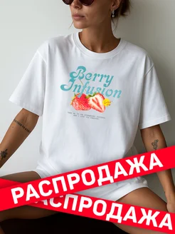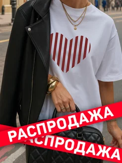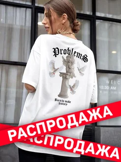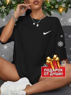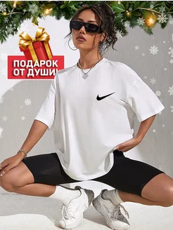 Футболка женская оверсайз спортивная с принтом удлиненная