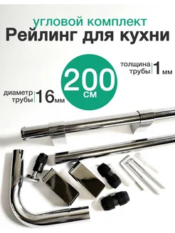 Рейлинг для кухни угловой 200 см с 10 крючками Тип-2 хром