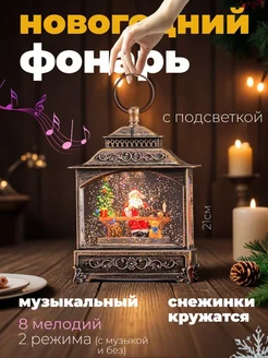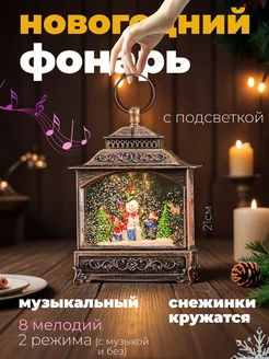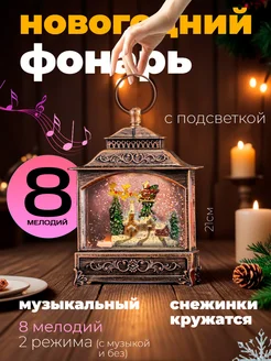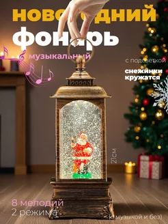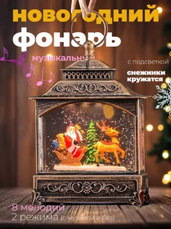 Новогоднее украшение светильник фонарь со снегом и музыкой