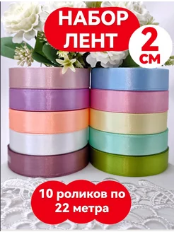 Лента атласная набор 20 мм упаковочная для рукоделия 10 шт