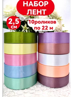 Лента атласная набор 2,5 см упаковочная подарочная 10 шт
