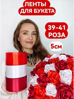 Лента атласная для букета роз 5 см красная белая розовая 3шт