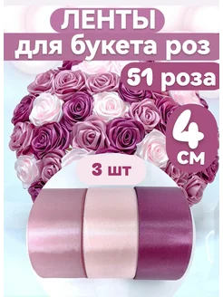Лента атласная 4см для букета роз 3шт розовая сиреневая