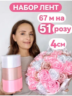 Лента атласная 4см набор для букета 3шт белая розовая пудра