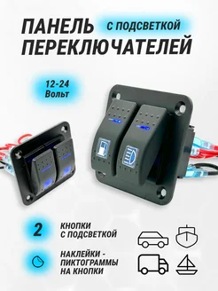 Панель переключателей 4 кнопки 12-24В с usb разъемами