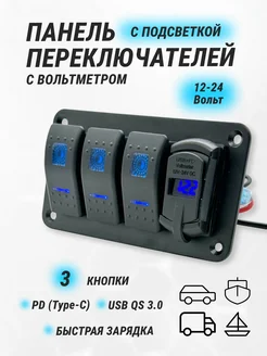 Панель переключателей 3 кнопки и зарядка QC3.0 USB, PD