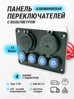 Панель переключателей с 4 кнопками и зарядкой USB и PD QC3.0