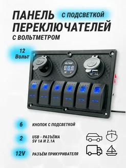 Панель переключателей 6 кнопок USB 12В-20А, 24В-10А