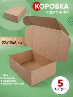 Картонная коробка самосборная 22х16х8 см 5 шт