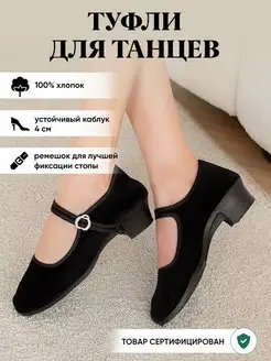 Туфли на низком каблуке черные для танцев