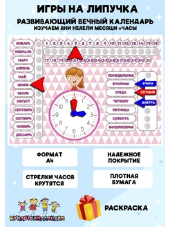 Вечный календарь на липучке учим время дни недели месяца