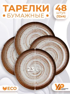 Тарелки одноразовые бумажные коричневые прочные 23 см 48 шт