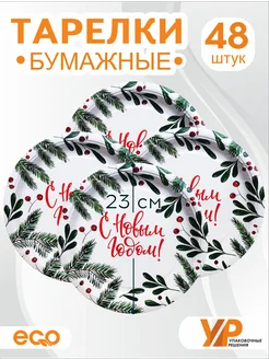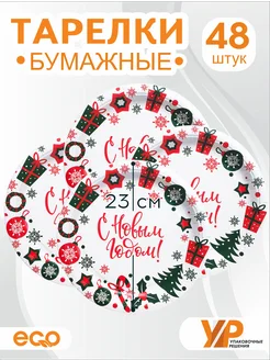 Тарелки одноразовые бумажные новогодние прочные 23 см 48 шт