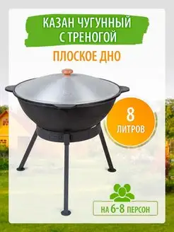 Казан чугунный 8 л плоское дно с крышкой Наманган