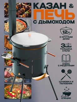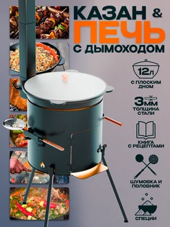 Казан чугунный 12л и печь с дымоходом, приборами и специями