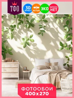 Фотообои флизелиновые 3D зеленые листья для спальни