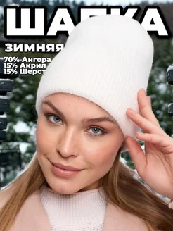 Шапка вязаная зимняя шерстяная без отворота