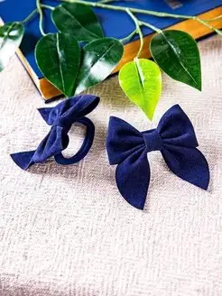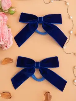 Бархатные банты для волос на резинке синий