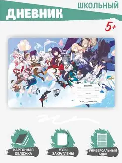 Дневник школьный аниме в твердой обложке Геншин импакт