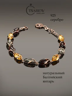 Браслет серебро 925 с натуральным янтарем