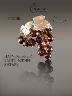 Брошь серебро 925 с натуральным янтарем