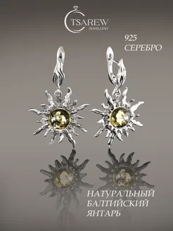 Серьги серебро 925 с натуральным янтарем